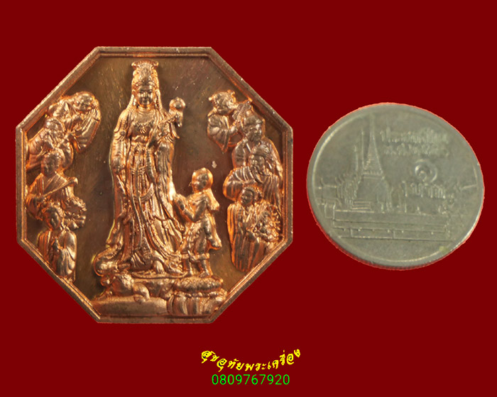 [ ชื่อพระ ] 453.เหรียญแปดเหลี่ยม เจ้าแม่กวนอิม พิธีเปิดป้ายวิหารเซียนอิมเหนียงไท้ ปี2552 สวยกริ๊บซองเดิมครับ