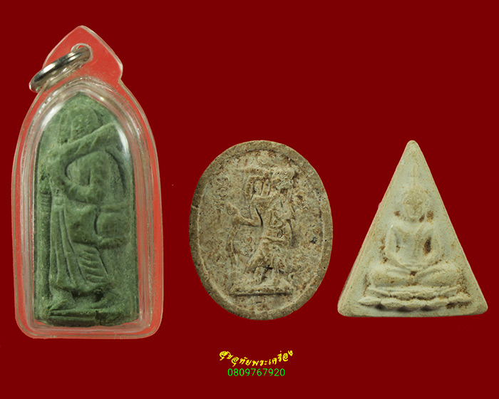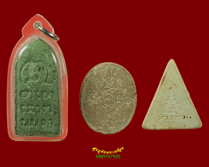 547.พระสิวลีเนื้อผงสีเขียว หลังขอมล้านนา+ผงฤาษีหลังยันต์+ผงนางพญา วัดม่วงขาว 1ชุด3องค์ น่าบูชาครับ