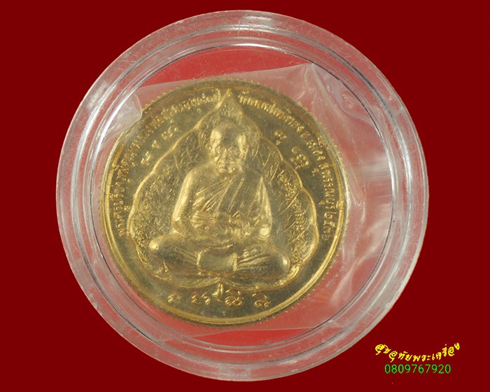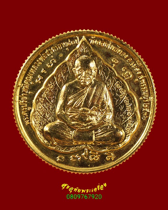 [ ชื่อพระ ] 572.เหรียญมหาโภคทรัพย์หลวงพ่อฮวด วัดดอนโพธิ์ทอง จ.สุพรรณบุรี ปี2536 เนื้อกะไหล่ทอง มีตลับเดิมครับ