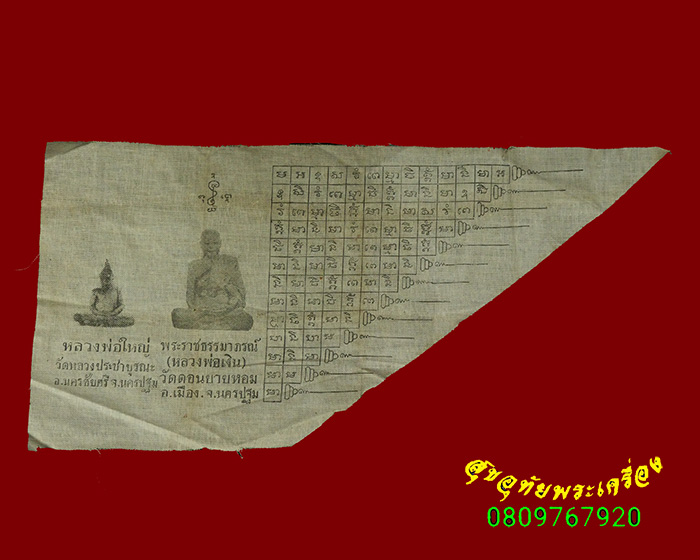 [ ชื่อพระ ] 587.ผ้ายันต์ชายธง หลวงพ่อใหญ่ หลวงพ่อเงิน วัดดอนยายหอม จ.นครปฐม ออกวัดหลวงประชาบูรณะ ปี16 น่าบูชา