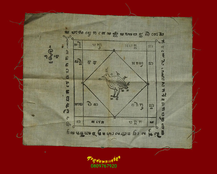 [ รายละเอียด ] ผ้ายันต์นกคุ้ม หลวงพ่อเงิน วัดดอนยายหอม จ.นครปฐม ขนาด 15x19 เซนติเมตร เข้มขลัง พบเจอน้อยน่าบูชาครับ