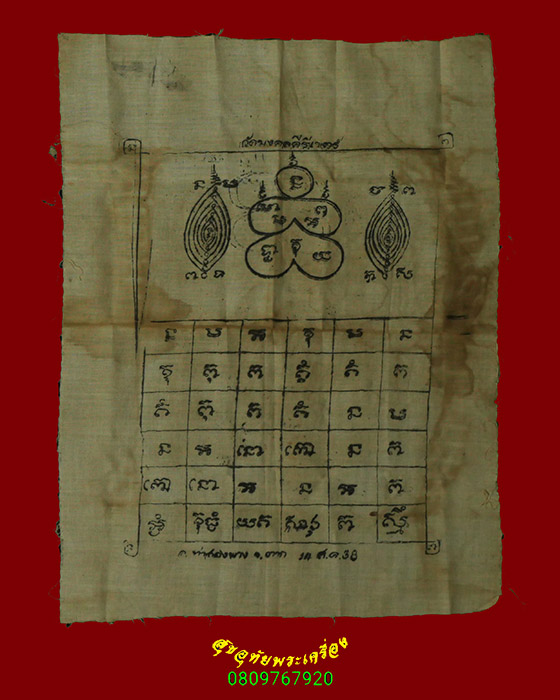 [ ชื่อพระ ] 660.ผ้ายันต์ครูบาสร้อย วัดมงคลคีรีเขต จ.ตาก ปี2538 น่าบูชาครับ