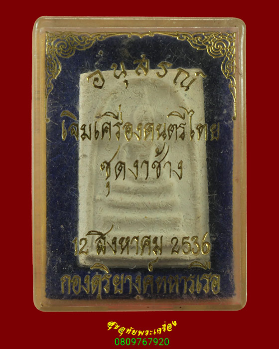733.สมเด็จพิมพ์วัดระฆัง อนุสรณ์ เจิมเครื่องดนตรีไทย ชุดงาช้าง ปี2536 หลวงพ่อเกษมปลุกเสก กล่องเดิม