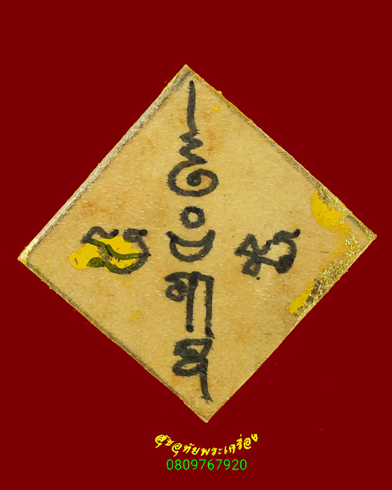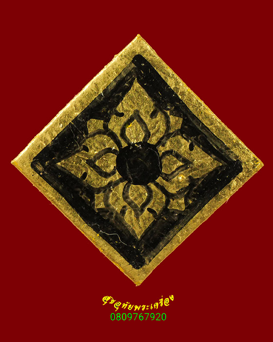 [ ชื่อพระ ] 75.เครื่องราง แผ่นหนังลงยันต์ หลังลายไทยลงทอง คลาสสิกครับ