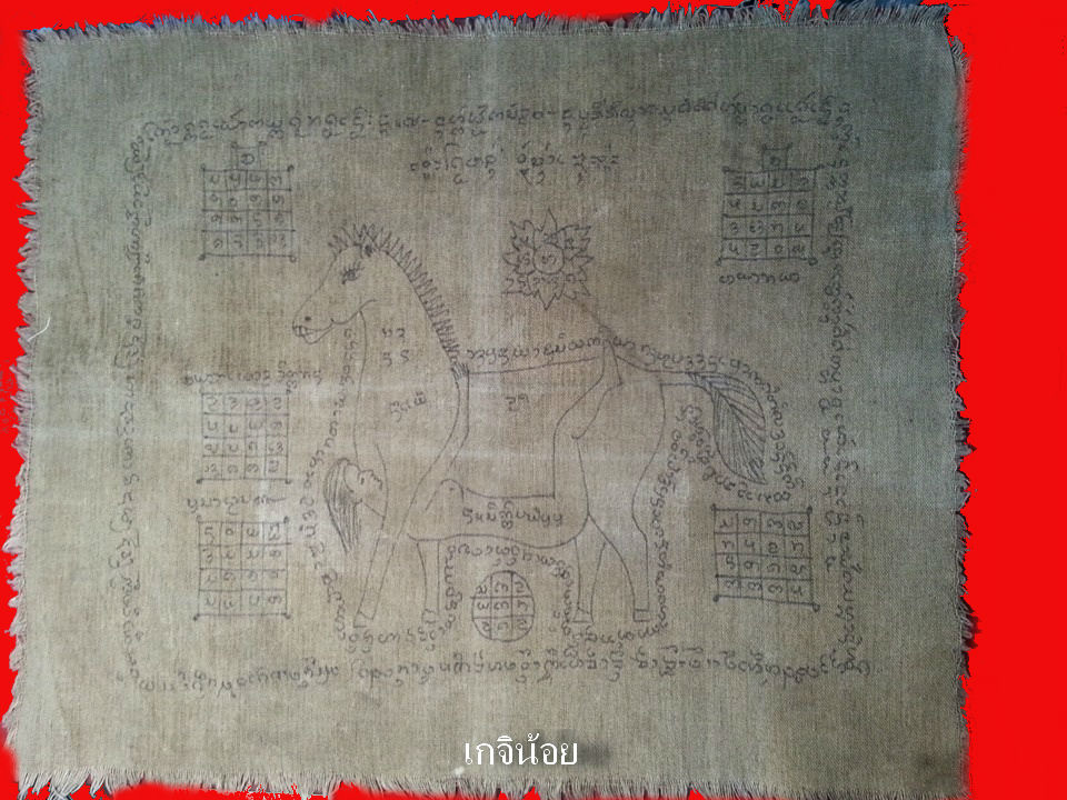 [ รายละเอียด ] ผ้ายันต์ม้าเสพนาง ครูบาวัง วัดบ้านเด่น รุ่น 2 สภาพคลาสิคๆ น่าเก็บน่าใช้ละคราฟ ผ้ายันต์แห่งเมตตามหาเสน่ห์อันดับ1ของเมืองไทยก็ว่าได้ ที่โด่งดังคงต้องยกให้ ม้าเสพนาง ของท่านครูบาวัง วัดบ้านเด่น จ.ตาก ผ้ายันต์ม้าเสพนางของท่านขึ้นชื่ออย่างมากทางด้านมหาเสน่ห์ เป็นที่เสาะแสวงหากัน ของแท้มีน้อยมากเพราะในการสร้างแต่ละครั้ง ไม่ได้สร้างกันครั้งละมาก ๆ แต่จะสร้างให้เฉพาะเป็นรายบุคคลที่มาขอท่านโดยตรงเท่านั้น แต่ถ้าเป็นยุคปลายที่ปั๊มจากแท่นสกีนก็จะมีมากขึ้นมาหน่อย ผ้าที่ใช้ในการสร้างผ้ายันต์ ยุคต้น และยุคกลาง ก็จะต้องเป็นผ้าดิบที่ผ่านการห่อศพมาแล้ว ป็นสูตรอย่างหนึ่งในการทำผ้ายันต์ของท่าน โดยนำมาวาด ลงอักขระเลขยันต์และปลุกเสกในคืนจันทร์เพ็ญ สูตรมหาเสน่ห์ม้าเสพนางที่นุ่มนวลล้ำลึกแต่เวลาใช้กลับร้อนแรง ไร้เทียมทาน ผ้ายันต์เขียนมือนี้ ถือเป็นผ้ายันต์ยุคกลางของท่าน ถ้าเป็นยุคต้น ๆ จะวาดและเขียนด้วยดินสอ ขนาดของผ้ายันต์ผืนนี้ ประมาณ 1ฟุตกว่า x 1ฟุตกว่า สภาพสวยสมบูรณ์ ทำจากผ้าดิบที่ได้มาจากการห่อศพ หายากมาก คนในพื้นที่ห่วงกันมาก รุ่นที่นิยม มีเพียง 3รุ่นเท่านั้น รุ่นแรกใช้ดินสอ รุ่นสองใช้ปากกา รุ่นสามสกรีน(ยุคปลายของหลวงพ่อแล้ว) สุดยอดผ้ายันต์ม้าเสพนางที่ได้รับความนิยมอันดับหนึ่ีงแห่งแดนล้านนา นับวันราคายิ่งแพงขึ้นทุกขณะ ผ้ายันต์ม้าเสพนางครูบาวัง การสร้างผ้ายันต์ในยุคนี้หลวงพ่อท่านจะลงจารอักขระ และเขียนแบบพร้อมกับ บริกรรมคาถากำกับ ทุกตัว ครบสูตรสำหรับแจกให้กับลูกศิษย์ พุทธคุณทุกด้านครับ มหาอำนาจเมตตา บารมี มหาเสน่ห์ ใช้ในด้านค้าขายยิ่งดี ใช้ได้ทั้งผู้หญิงและผู้ชาย ใครที่นำไปบูชาขอให้ศรัทธาจริงๆ จะเกิดผลละคราฟ