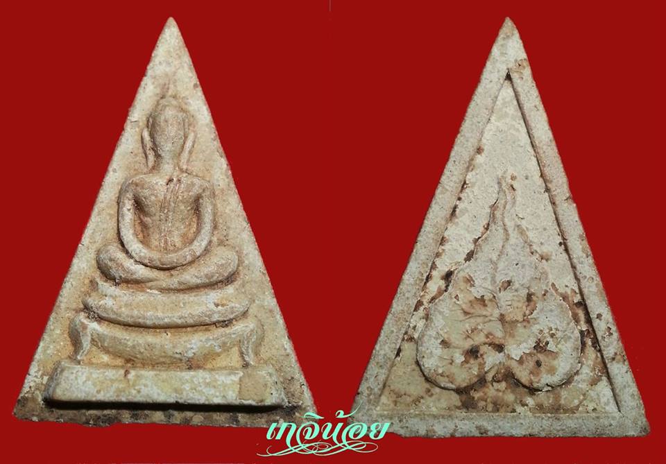[ ชื่อพระ ] สมเด็จในย่ามพิมพ์พระนางพญา หลังใบโพธิ์ปี 2517 หลวง ปู่สี วัดถ้ำเขาบุญนาค