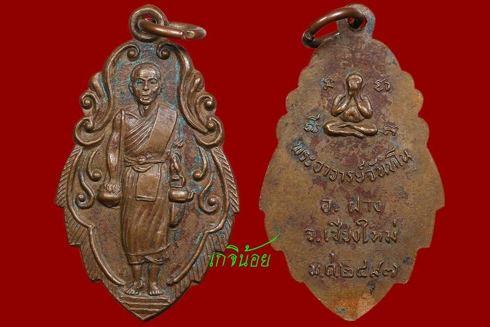 เหรียญรุ่นแรกพระอาจารย์ จันทโน วัดเจดีย์งาม เชียงใหม่ ปี 2497 บล็อกนิยม วงเดือน