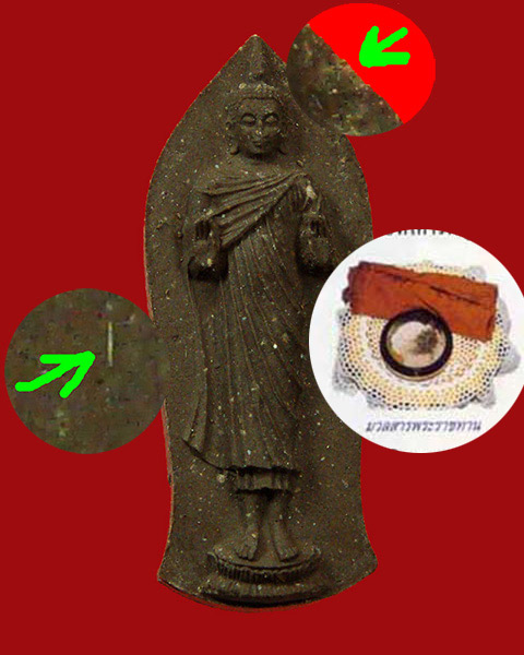 [ รายละเอียด ] พระพุทธนราวันตบพิธ พระพุทธรูปฉลองพระองค์ ในหลวงรัชกาลที่ 9 จัดสร้างในวาระอันเป็นมงคลยิ่ง ที่ในหลวงรัชกาลที่ 9 ทรงเจริญพระชนมายุ 72 พรรษา เมื่อพ. ศ. 2542 ทรงพระกรุณาโปรดเกล้าพระราชทานอนุญาตให้จัดสร้างพระพุทธนราวันตบพิธ พระพุทธรูปฉลองพระองค์สมเด็จ พระเจ้าอยู่หัวรัชกาลที่ 9 เพื่อให้ ประสกนิกรได้สักการะบูชา โดยนำรายได้ทูลเกล้า ถวายสนับสนุน มูลนิธิชัยพัฒนา พระพิมพ์ พระพุทธนราวันตบพิธ เป็นพระพุทธรูปยืนยกพระหัตถ์ทั้งสองข้างปางห้ามสมุทร เนื้อผงขนาดสูง 3.2 เซนติเมตรด้านหลังประดิษฐานพระสัญลักษณ์เฉลิมพระชนมายุ 72 พรรษา มวลสารองค์พระประกอบด้วย มวลสารจากสถานที่ประสูติตรัสรู้แสดงปฐมเทศนาและปรินิพพานในเนปาลและอินเดีย เเละจากวัด สำคัญเก่าแก่หลายแห่งในประเทศศรีลังกาจีนและญี่ปุ่น รวมทั้งมวลสารจากสถานที่ศักดิ์สิทธิ์ และวัดสำคัญทั่วประเทศ ผงพุทธคุณจากคณาจารย์ที่เคารพบูชาทั่วพระราชอาณาจักร และที่สำคัญและเป็นมงคลยิ่ง คือ ได้รับ พระมหากรุณาธิคุณ จากในหลวงรัชกาลที่ 9 พระราชทานเส้นพระเจ้า พระจีวร และมวลสารส่วนพระองค์ (ผงจิตรลดา)โดยพระราชทานพานสมเด็จพระญาณสังวรสมเด็จพระสังฆราชอัญเชิญมาประสมอยู่ในเนื้อพระพุทธนราวันตบพิธนี้ด้วย สำหรับองค์นี้เห็นเส้นพระเจ้าชัดเจนสองจุดตามภาพเป็นมงคลอย่างยิ่งน่าบูชามากๆครับ