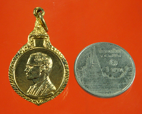 [ ชื่อพระ ] 8.เหรียญในหลวง ร.9 ทรงเสด็จเททองหล่อพระประธาน วัดกลางวรวิหาร สมุทรปราการ ปี28 กะใหล่ทอง