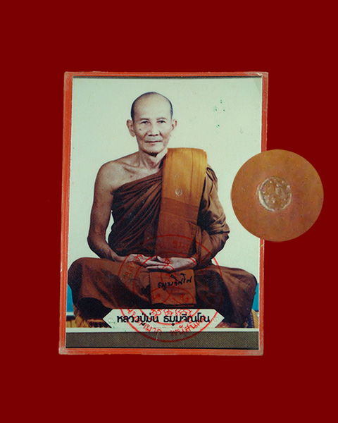 9.รูปถ่ายสีหลวงปู่ม่น หลัง จีวร ตอกโค๊ด วัดเนินตามาก ชลบุรี