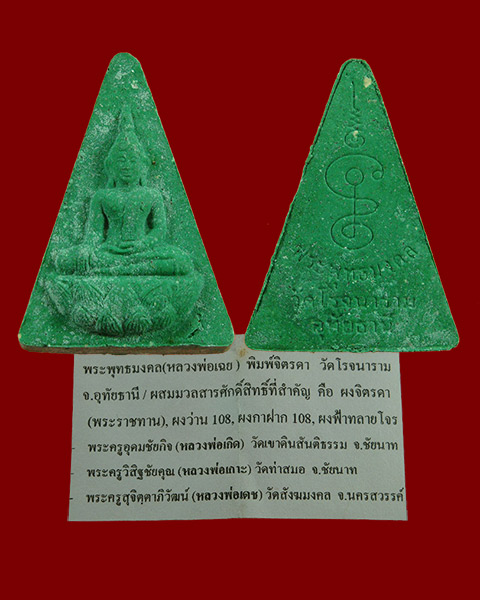 [ รายละเอียด ] พระพุทธมงคล (หลวงพ่อเฉย)พิมพ์จิตรดา วัดโรจนาราม จ.อุทัยธานี ผสมมวลสารศักสิทธิ์ที่สำคัญคือ ผงจิตรดา (พระราชทาน) ผงว่าน108 ผงกาฝาก108 ผงฟ้าทลายโจน อะิฐานจิตปลุกเสกโดย หลวงพ่อเกิด วัดเขาดิน จ.ชัยนาท หลวงพ่อเกาะวัดท่าสมอ จ.ชัยนาท หลวงพ่อเดช วัดสังฆมงคล จ.นครสวรรค์ พระสวยมวลสารมงคล เกจิขลังปลุกเสก พร้อมซองเดิมใบแนบเดิมน่าบูชาครับ