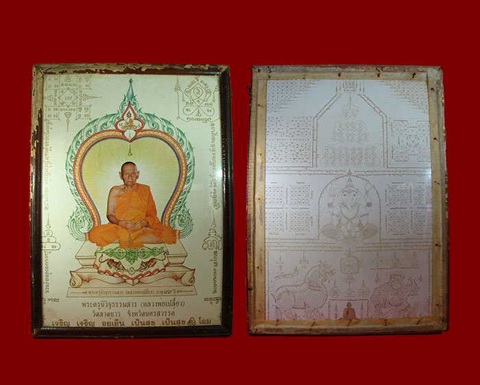 12.ผ้ายันต์เขียนมือ หลวงพ่อแดง วัดเขาบันไดอิฐ หายากมาก ใส่กรอบพร้อมบูชาครับ