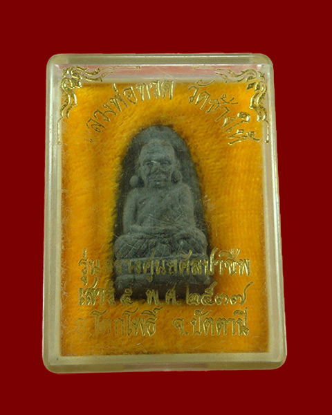 43.หลวงปู่ทวด วัดห้วยมงคล รุ่นทูลเกล้า ปี47 เนื้อว่านแดง พิมพ์นั่งบัว พิมพ์เล็ก กล่องเดิมครับ