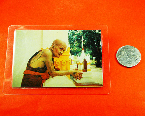 9.รูปถ่ายสีหลวงปู่ม่น หลัง จีวร ตอกโค๊ด วัดเนินตามาก ชลบุรี