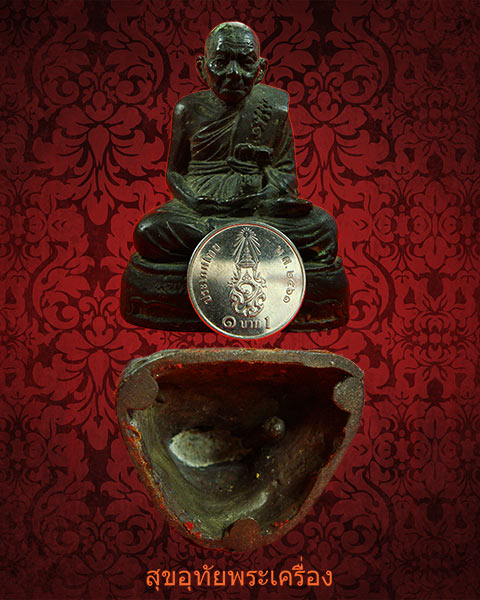 17.พระบูชาหลวงพ่อขอม วัดไผ่โรงวัว จ.สุพรรณบุรี เนื้อปูนผสมผง พร้อมครอบแก้วยุคเก่าเดิมสุดคลาสสิก