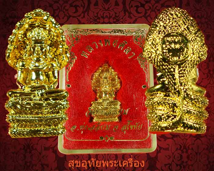 [ ชื่อพระ ] 42.รูปหล่อหลวงพ่อศิลา วัดทุ่งเสลี่ยม จ.สุโขทัย กะไหล่ทอง สวยกริ๊บกล่องเดิมครับ