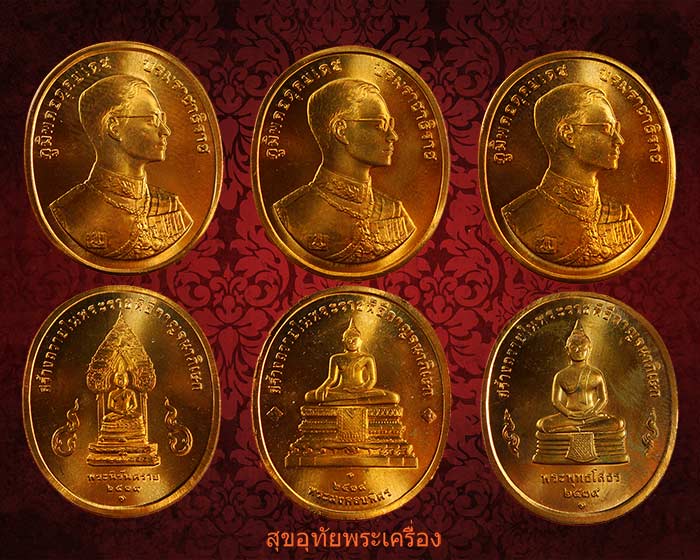 [ รายละเอียด ] เหรียญพระพุทธปัญจภาคี จัดสร้างเนื่องในมหามงคลวโรกาสที่ พระบาทสมเด็จพระเจ้าอยู่หัว ภูมิพลอดุลยเดชมหาราช ทรงครองสิริราชสมบัติ ครบ 50 ปี เมื่อวันที่ 9 มิถุนายน พ.ศ. 2539 โดยกองกษาปณ์ กรมธนารักษ์ โดยพระบาทสมเด็จพระเจ้าอยู่หัว ทรงพระกรุณาโปรดเกล้าให้สมเด็จพระบรมโอรสาธิราชฯ สยามมกุฎราชกุมาร เสด็จฯ แทนพระองค์ ทรงประกอบพิธีพุทธมหาชัยมังคลาภิเษกในวันที่ 20 มีนาคม 2540 ณ พระอุโบสถวัดพระศรีรัตนศาสดาราม (วัดพระแก้ว)มีพระสงฆ์ทรงสมณศักดิ์ และพระเกจิอาจารย์ ทรงเจริญพระพุทธมนต์ สวดพุทธมหาชัยมังคลาภิเษก ทั้งหมดจำนวน 54 รูป​ ด้านหน้าเหรียญเป็นพระบรมฉายาลักษณ์ของพระบาทสมเด็จพระเจ้าอยู่หัว(ร.9) ด้านหลังในแต่ละเหรียญเป็นรูปพระพุทธรูปศักสิทธิ์สำคัญของประเทศไทย ประกอบด้วย1.พระพุทธชินราช 2.พระพุทธชินสีห์ 3.พระพุทธโสธร 4.พระนิรันตราย และ 5.พระมงคลบพิตร จัดเป็นเหรียญมงคลที่น่าบูชา ชุดนี้กล่องเดิมๆหายากน่าบูชาครับ