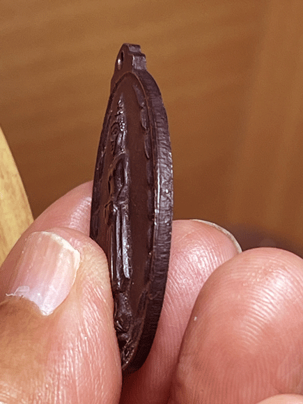 เหรียญหลวงปู่มั่น วัดถ้ำสาริกา ปี 2519 เนื้อทองแดงรมน้ำตาลดำ