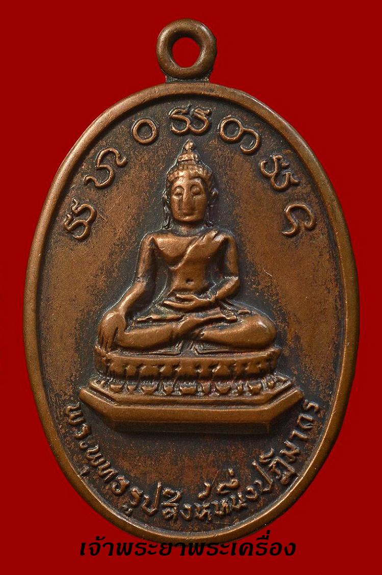 เหรียญพระพุทธรูปสิงห์หนึ่งปฎิมากร วัดร่องแมด รุ่นแรก ปี 17 เนื้อทองแดง