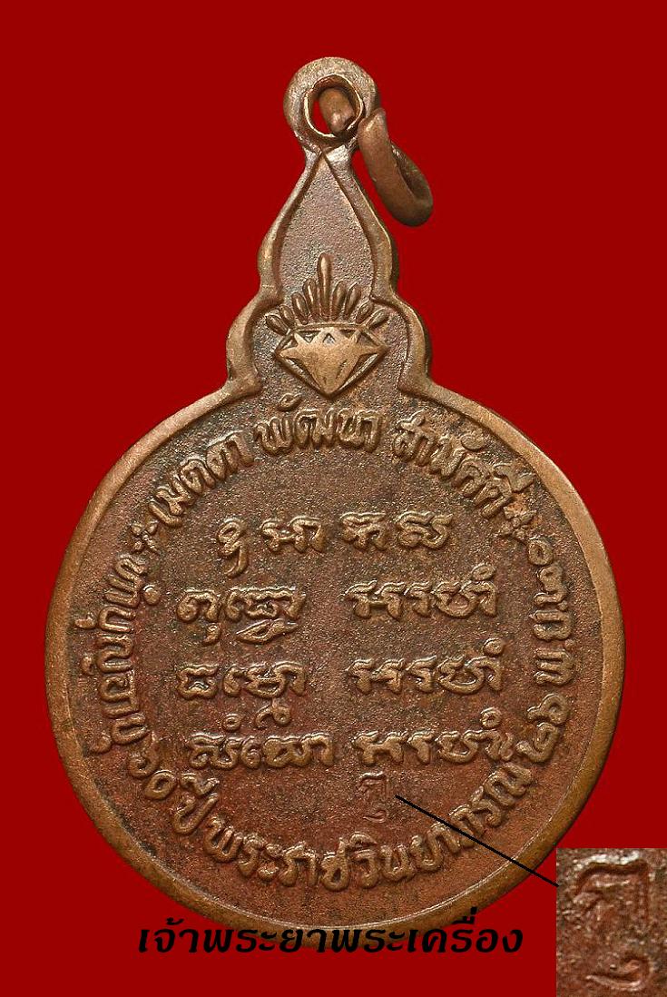 เหรียญสมเด็จพระเจ้าพรหมมหาราช หลังหลวงพ่อบุญเย็น ปี 19 เนื้อทองแดง มีโค๊ด