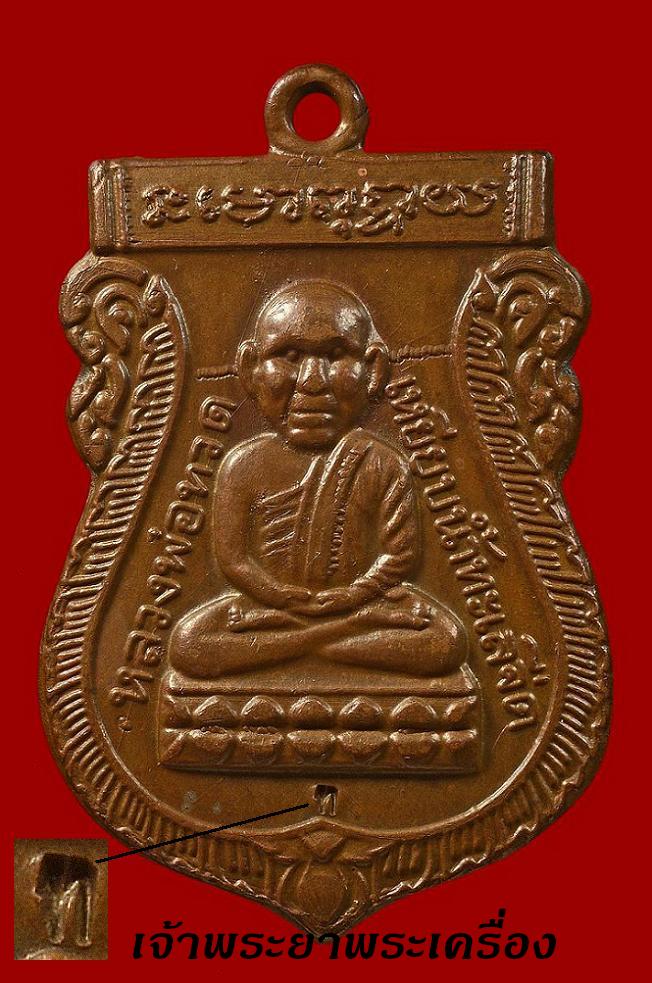 หลวงปู่ทวด วัดช้างให้ รุ่น ร.ศ. 200 พิมพ์เสมาเล็กลงยาสีแดงเคลือบนูนนิยม หายาก
