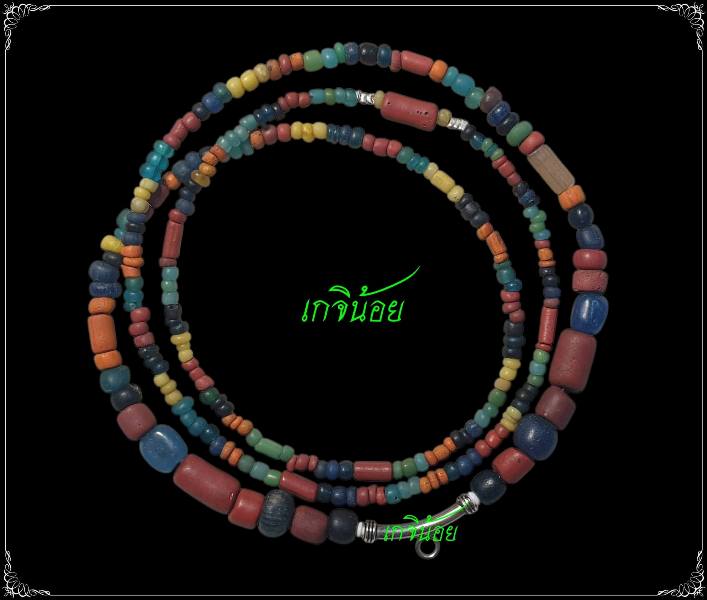 [ รายละเอียด ] ลูกปัดทวาราวดี เขาศรีวิชัย อ.พุนพิน สุราษฎร์ธานี ขนาดประมาณ 14 นิ้ว อีกหนึ่งลูกปัดโบราณยุคทวาราวดี ศรีวิชัย ที่มีอายุกว่า 1,200 ปี ของจังหวัดสุราษฎร์ธานี อีกหนึ่งของดี ที่ สนน ราคา ยังเบาๆ จับต้องได้ หายากน่าเก็บ น่าใช้อีกละคราฟ *********************************************************************** ลูกปัดทวาราวดี มีทั้งหมด ๑๙ สี ถ้าใครมีไว้ครอบครอง ผู้นั้นจะไม่ตกยากลำบากและแคล้วคลาดปัทวันอันตรายทั้งไฟ ลม ฟ้า อสรพิษ คนพาล โจร ขโมย ภูตผีปีศาจ และเดรัจฉานวิชา ป้องกันอันตรายตลาดเขี้ยวงา ทำให้ส่งเสริมบารมีแก่กล้า ข้าวของเงินทองไหลมาเทมา ผู้ใดทำบุญอธิษฐานเป็นเนืองนิตย์ ผู้นั้นจะไม่ยากจนเข็ญใจ ไร้ทรัพย์อับปัญญา อายุของลูกปัดมีมาตั้งแต่พระพุทธเจ้าเสวยราชย์เป็นพระชนกนารถเมื่อ ๔,๐๐๐ ปีมาแล้ว ฉะนั้นถ้าท่านผู้ใดมีอยู่จะเป็นสีใดก็ตาม ให้เคารพสักการบูชาด้วยธูปเทียน ดอกไม้และใส่บาตร กรวดน้ำให้ดวงวิญญาณของผู้เป็นเจ้าของ การบูชา ให้บูชาดังนี้ ธูป ๙ ดอก พวงมาลัยมะลิสด น้ำ ๓ แก้ว ก่อนนอนทุกคืนแล้วอธิษฐานเอาตามความปรารถนาจะเป็นผล การทำบุญตักบาตร ข้าวสวยปากหม้อ ไข่ต้ม ๒ ฟอง กล้วยน้ำว้าหรือกล้วยหอม ๙ ผล ตักบาตรทุกครั้งที่ ประสบความสำเร็จ และกรวดน้ำนึกถึงดวงวิญญาณเจ้าของ คนสมัยก่อนนิยมนำลูกปัดซึ่งทำจากหินที่มีค่าสีต่าง ๆ มากลึงเจาะเป็นรู สำหรับร้อยเป็นเครื่องประดับสวมคอ และสวมข้อมือไว้ป้องกันอันตรายต่าง ๆ ลูกปัดทวารวดีมี ๑๙ สี ดังนี้ ๑. ทวารวดีแท้ ดีที่สุด เป็นของสูงหาได้ยาก สีออกน้ำตาล เนื้อละเอียดสวยมาก ป้องกันปืน ดาบ แหลน หลาว ธนู หน้าไม้ ๒. ทวาหัวดำท้ายดำกลางขาว ป้องกันได้เช่นเดียวกับทวาแท้ ๓. ทวาลูกยอ มีสายเหมือนลูกยอ ใช้สำหรับฝนต้มกับลูกยอเป็นยารักษาโรค ๔. ทวาหัวเทียน หัวดำ จะทำให้เกิดไหวพริบปฏิภาณเฉลียวฉลาดหลักแหลม ๕. อำพันทอง อยู่ยงคงกระพัน กันโรคนิ่ว หมากัดไม่เข้า เงินทองไหลมา เหมาะป้องกันสามีเจ้าชู้ ๖. น้ำเงินเนื้อกษัตริย์ มีอำนาจวาสนา ส่งเสริมวาสนาให้สูงขึ้น นำโชค ๗. หยก กันอุบัติเหตุ กันผี เป็นมหามงคลอันอุดม ๘. เหลือง มีเสน่ห์ เมตตามหานิยม คนรักใครไม่เกลียดชัง ๙. เหลืองสวาทหรือเหลืองตองอ่อน เสน่ห์แรง คนรักใคร่ลุ่มหลง ถวายตัวเป็นทาสรับใช้ ๑๐. สแลน ป้องกันอุบัติเหตุ ป้องกันสามีเจ้าชู้ ๑๑. หยกขาว ไม่แก่ อายุมั่นขวัญยืน ร่างกายแข็งแรงไม่เจ็บไข้ ๑๒. ฟ้า รวย ๑๓. ดำ กันผีสาง กันขโมย นำโชค ๑๔. เขี้ยวหนุมาน(แก้วสารพัดนึก) นึกอะไรได้ทั้งนั้น นึกเงินได้เงิน นึกทองได้ทอง ๑๕. ส้มปู อยู่ยงคงกระพัน รวยมาก ไม่อดอยาก ดูดพิษสัตว์ได้ ๑๖. น้ำผึ้ง มีวาส
