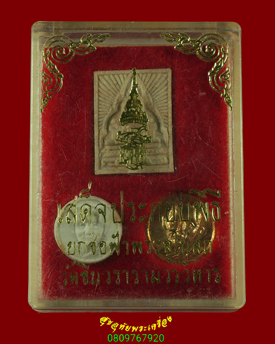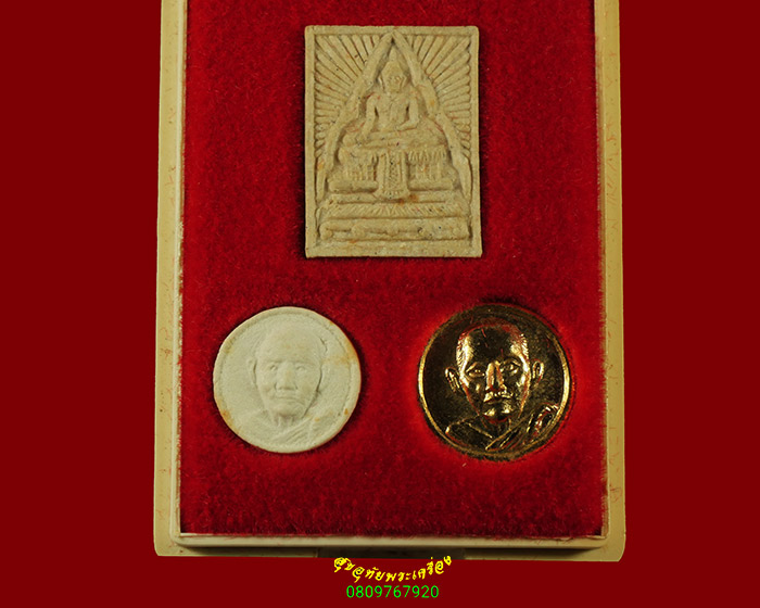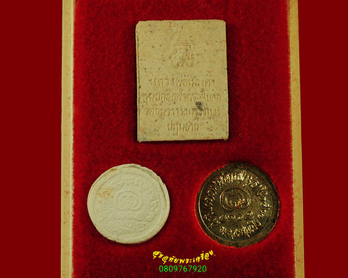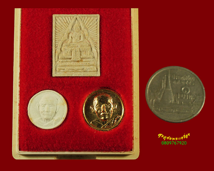 [ รายละเอียด ] พระชุดสมเด็จพระเทพฯเสด็จประกอบพิธียกช่อฟ้าพระอุโบสถ วัดชินวรารามวรวิหาร จ. ปทุมธานี ปี2521 ประกอบด้วย พระผงรูปเหมือนหลวงพ่อทองคำ พระผงกลมเล็กหลวงพ่อเปิง เหรียญกลมเล็กหลวงพ่อเปิง ครบชุด กล่องเดิมน่าบูชาครับ