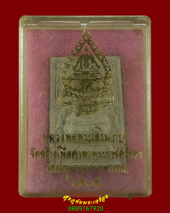 [ ชื่อพระ ] 167.พระผงหลวงพ่อพระเสริม หลัง ภปร. วัดปทุมวนาราม ปี2535 ยอดมวลสารยอดพิธี กล่องเดิมครับ